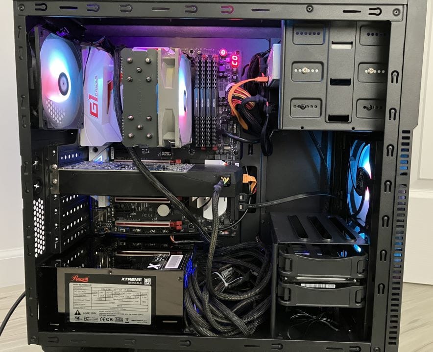 This was a straightforward build with no real issues to report. The CPU + motherboard + RAM were parts that I had originally purchased on Craigslist a few years back and used to upgrade my cousin’s PC in Dallas. I recently visited with new parts and brought these back. I paired them with the Dell OEM GTX 1060 6GB from the Alienware flip and the free Rosewill PSU I picked up. The case and hard drive were both from recent hauls, and the cooler, fans, ARGB controller, and light strip were all from Amazon.