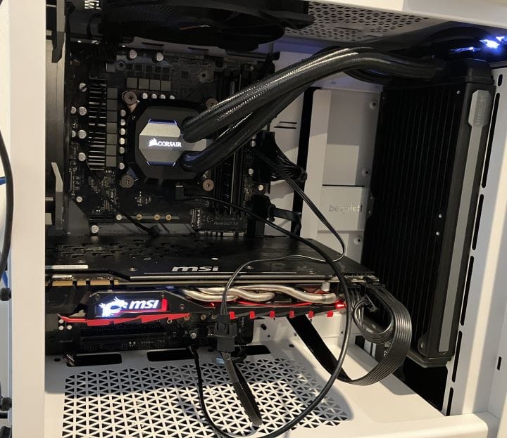 The CPU and motherboard were from my father-in-law’s PC. I had originally planned on using a Corsair H100i v2 since the case didn’t have a window and thus no RGB was required.